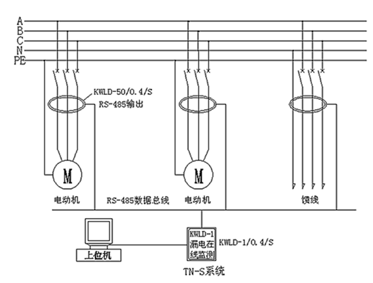 KWLD-6000系列智能漏電監測系統主要由 KWLD-1漏電監測主機、KWLD-50/80 智能漏電檢測互感器組成。漏電互感器通過串行總線,將漏電流數據上送到監測主機,監測主機通過TCP/IP協議與后臺監控計算機進行數據交換,實現通訊組網。并且陰雨天絕緣整體劣化情況自動適應,采用模糊算法干擾屏蔽,使其工作穩定可靠。
