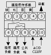 無源輸出:端子6、8為濕度開關;端子7、8為溫度開關;8為公共端;